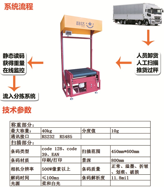 我公司生产的大型称重扫描台解决以往易损,数据传输不便等弊端。通过相机扫描条码的方式解放员工双手,在原有小型基础上提升了景深和扫描范围。